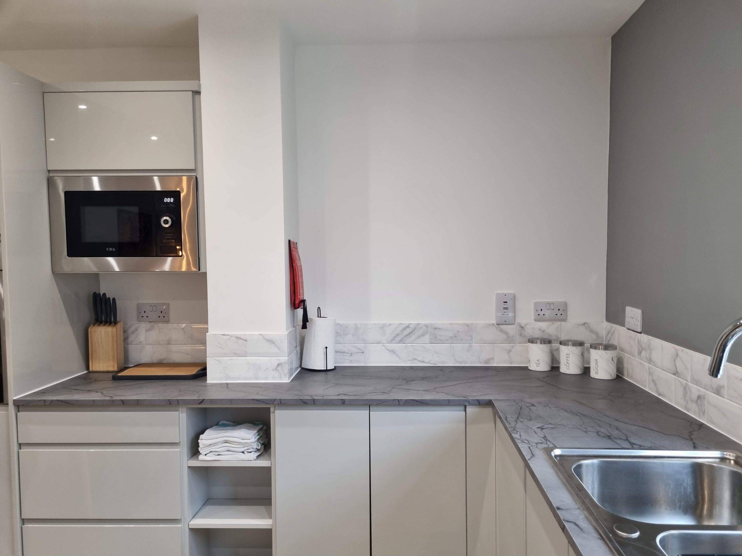 Towels and linen are provided and facilities include a fully equipped kitchen with kettle, toaster, microwave, range cooker with multi-ovens and hob, fridge/freezer, dishwasher, cooking utensils, cutlery (silverware), crockery and glasses. Iron and Ironing Board. Hairdryers in bedrooms, along with drawer and hanging space.